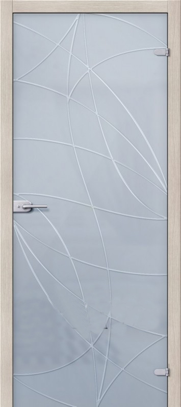 Описание: Межкомнатная дверь из закаленного сатинированного стекла с художественным рисунком в технике «алмазная грань», с еврокромкой.