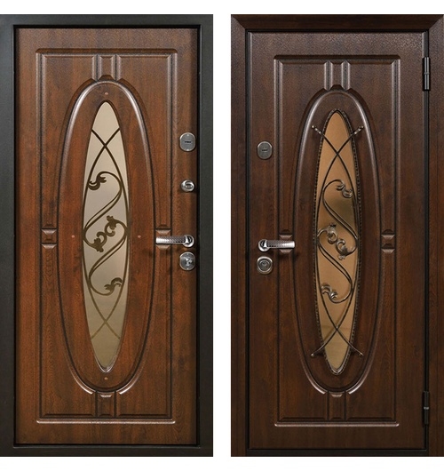 Отделка снаружи: МДФ 16 мм влагостойкий, покрытие VINORIT, цвет «Дуб темный», стеклопакет зеркально-тонированный «Бронза», с решеткой