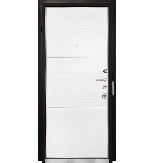 Двери изготовлены в лучших традициях производства металлических дверей и соответствуют всем современным требованиям. Все двери являются цельногнутыми и оснащены ребрами жесткости, что придает конструкции максимальную жесткость и устойчивость к изгибам. Толщина основного листа металла 1,5 мм, толщина профиля 2 мм. Для дополнительной защиты двери оснащены дополнительными пластинами металла в районе замка и петель. Так же, двери оснащены противосъемными ригелями. В качестве наполнителя используется базальтовая плита, обладающая увеличенным запасом прочности и звукоизоляции. Для дополнительной звукоизоляции используется два контура уплотнения.