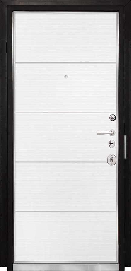 Металлические двери серии М, полностью комплектуются только итальянской фурнитурой. Замки оснащены врезными броненакладками, для дополнительной защиты от взлома.