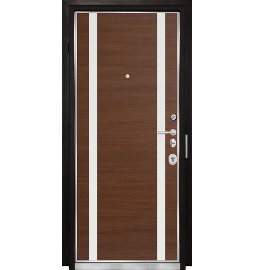 Металлические двери серии М, полностью комплектуются только итальянской фурнитурой. Замки оснащены врезными броненакладками, для дополнительной защиты от взлома.